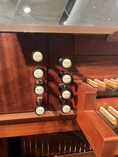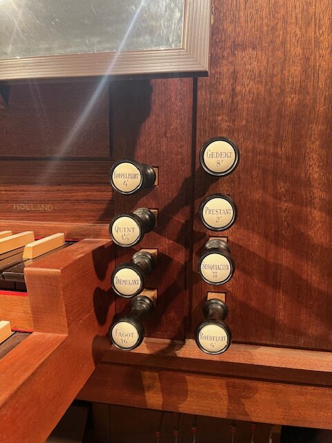 8′ Gedekt 4′ Koppelfluit 2′ Prestant 1 1/3′ Quint II Sesquialter Tremulant