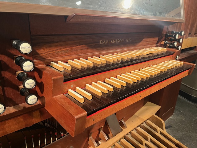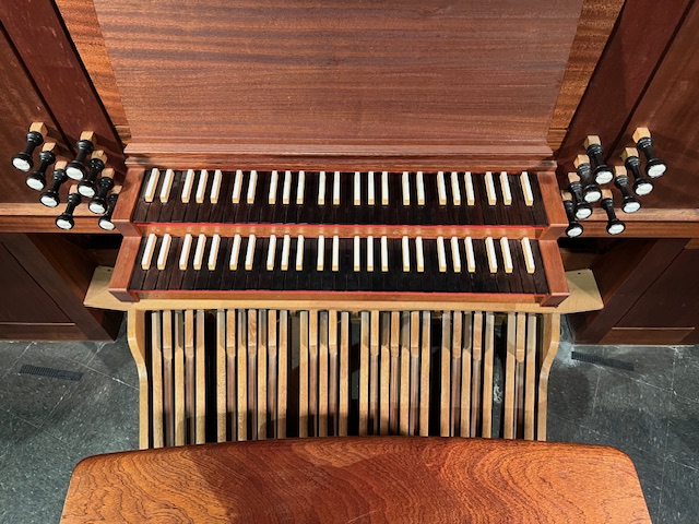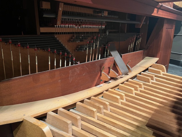 Mechanische tractuur.Het Flentrop orgel staat in de Lotte Lehman Concert Hall, die speciaal is gebouwd voor opera, vocale voorstellingen en symfonie presentaties.