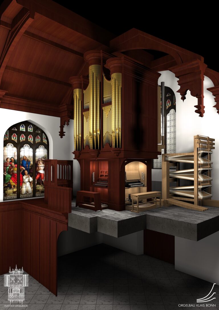 The work has been executed in a cooperation between Flentrop Orgelbouw B.V. and Johannes Klais Orgelbau GmbH & Co. KG.