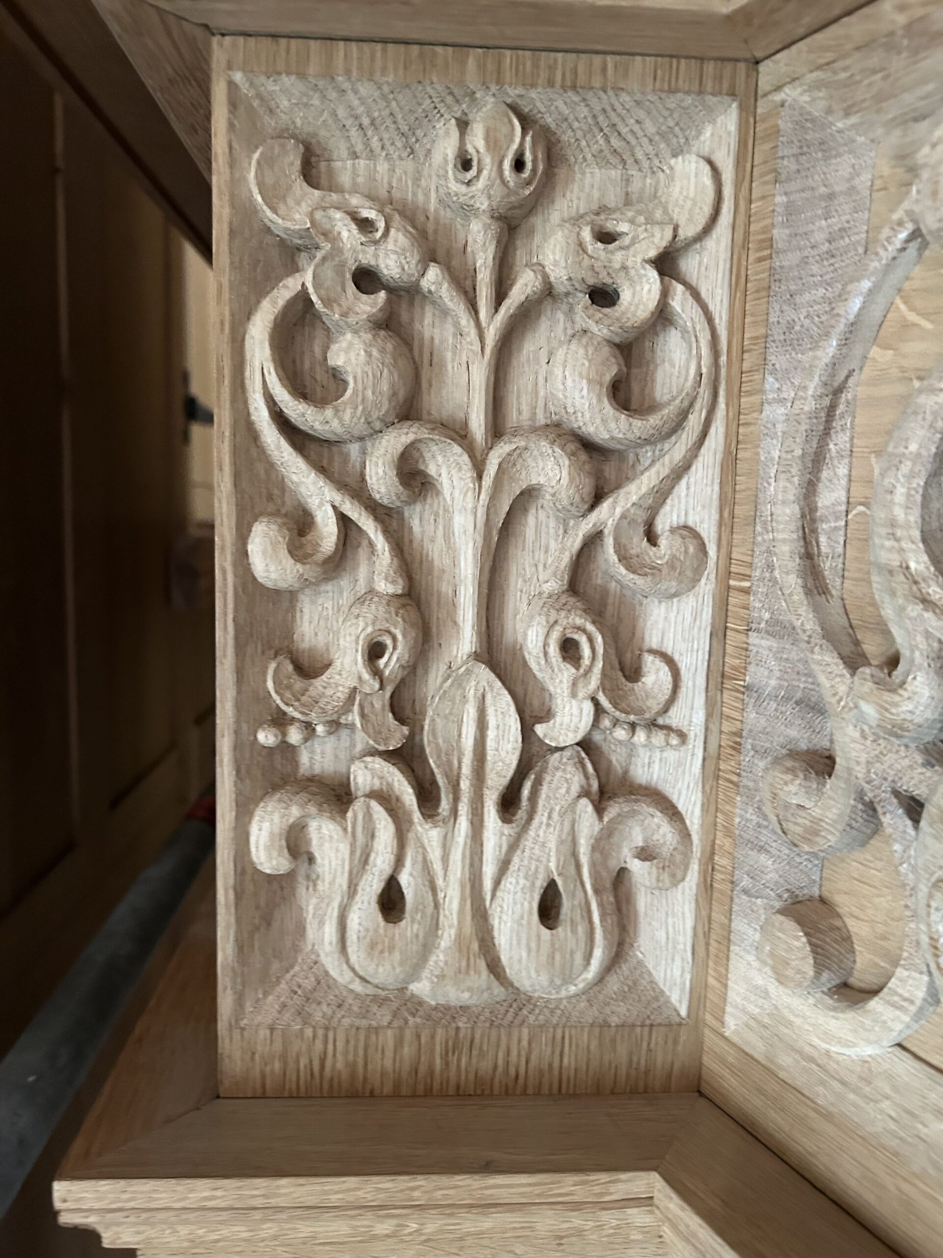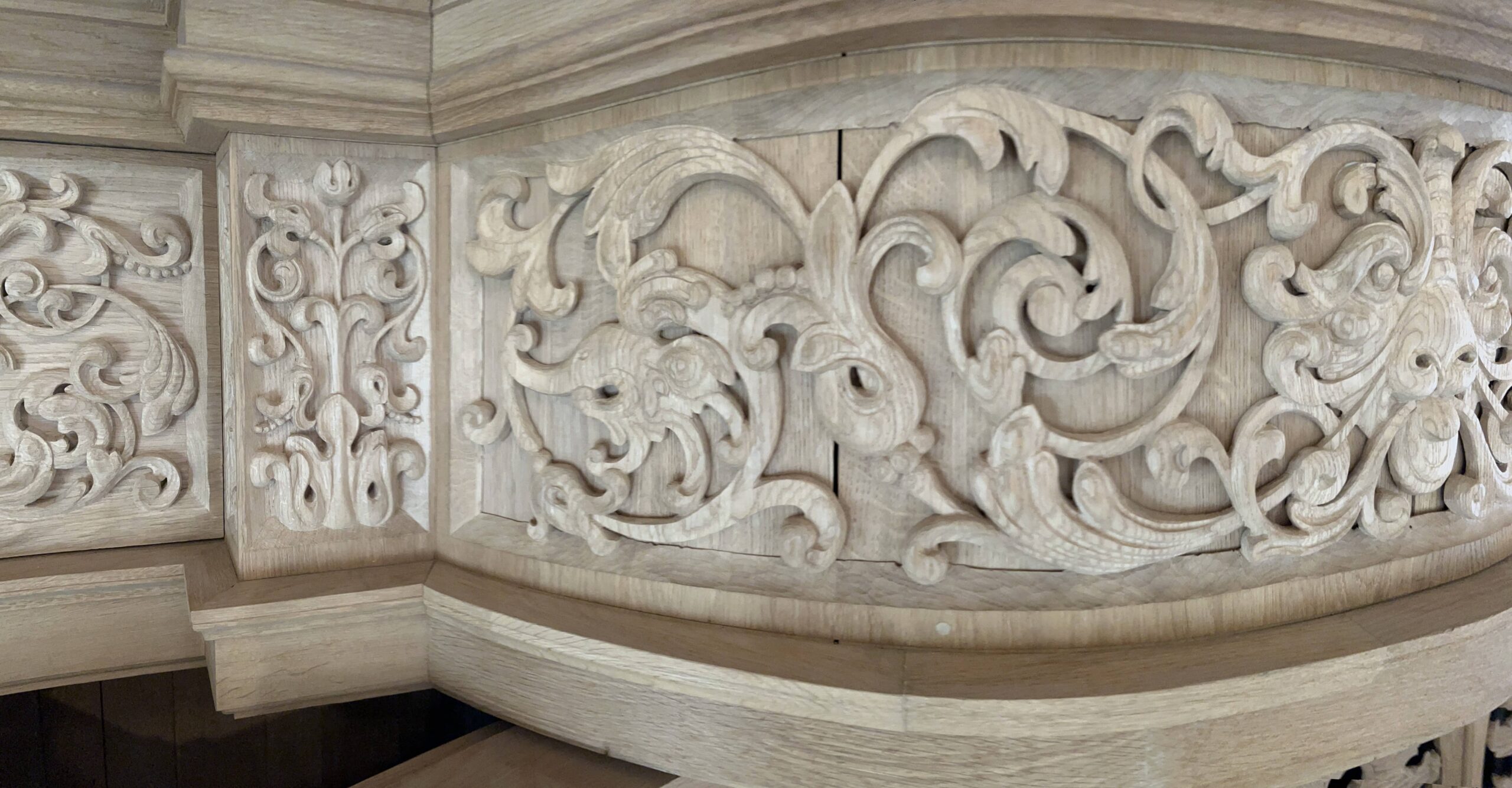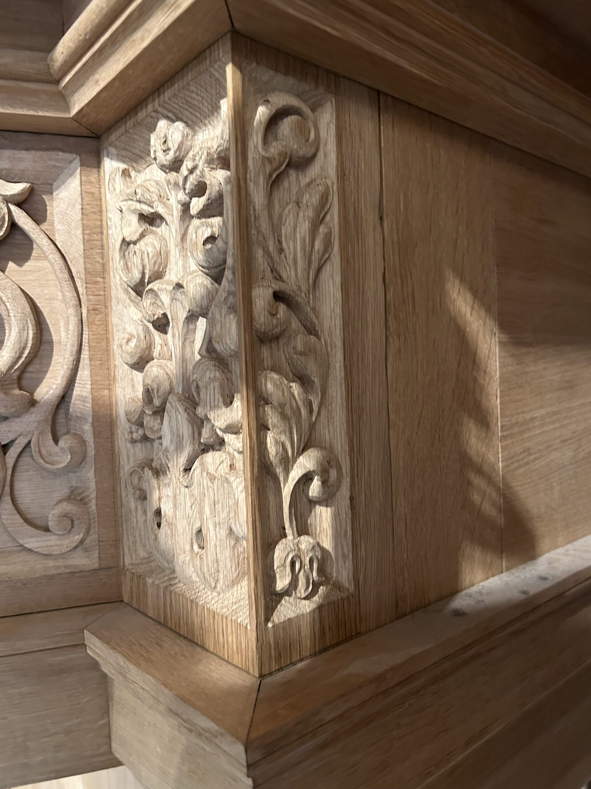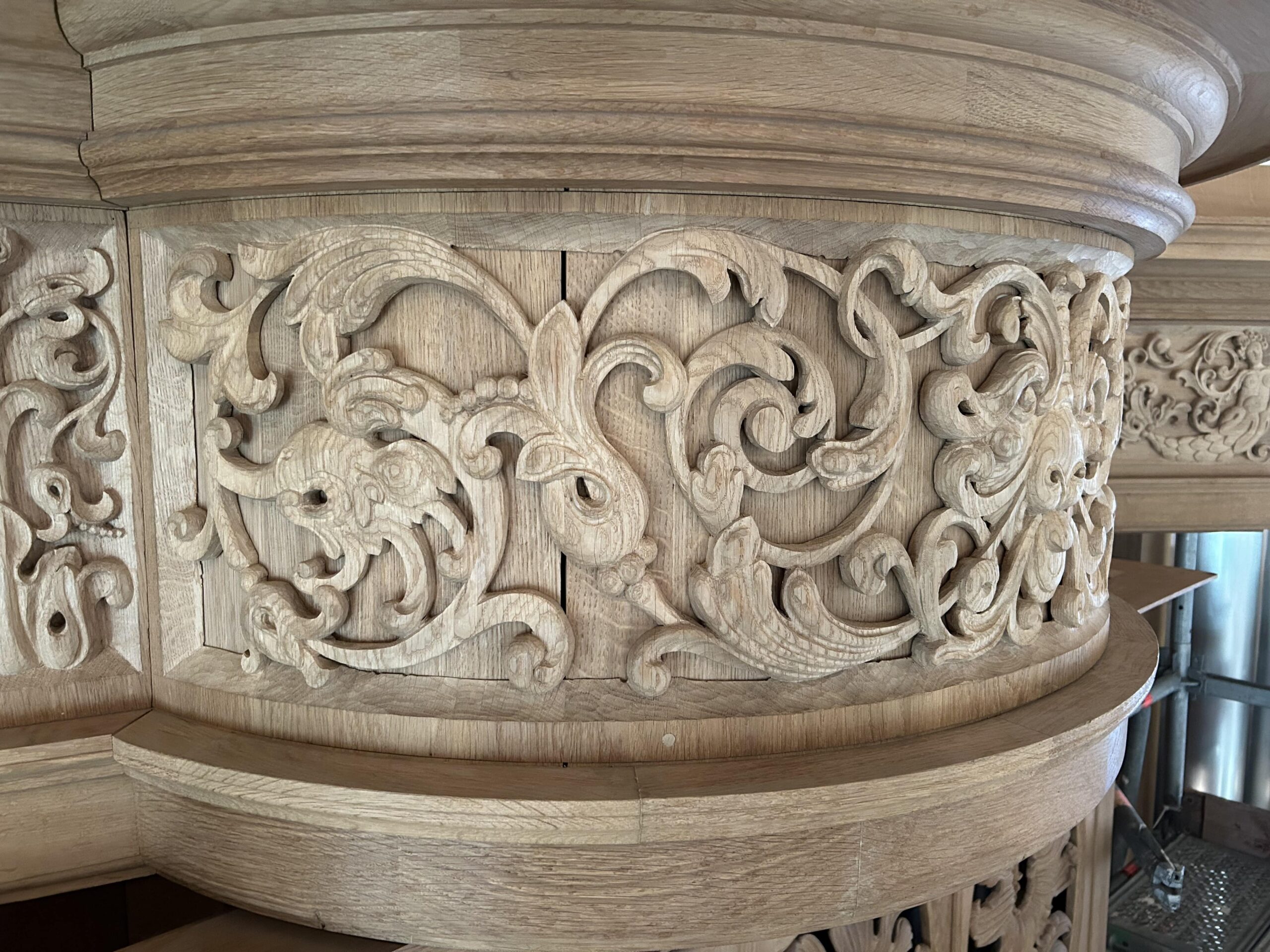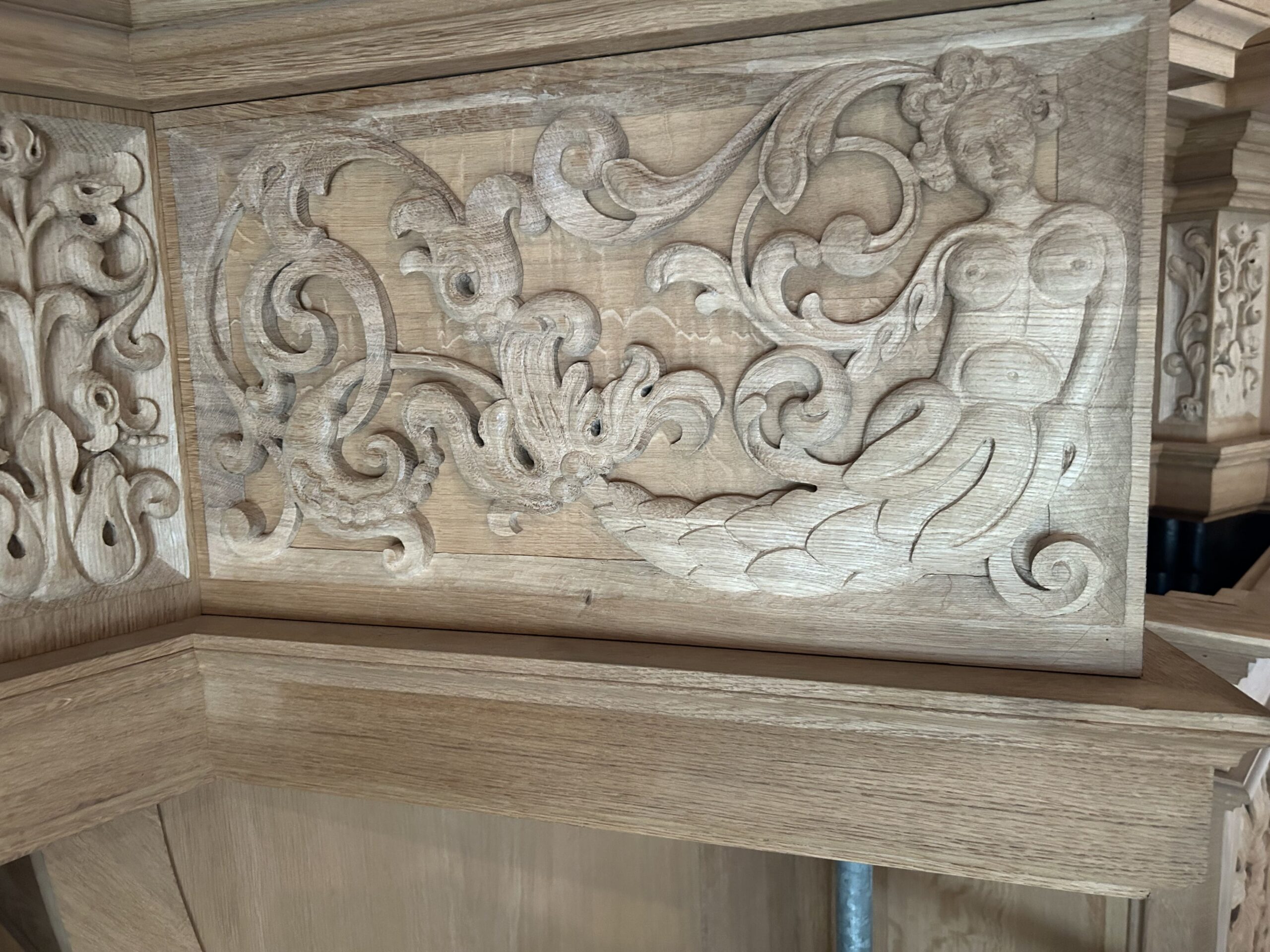 Oktober 2024 maakte Christiane Sandler het nog ontbrekende snijwerk in de Fries onder het Hoofdwerk af (zie foto’s). Flentrop monteerde het. Op een aantal plaatsen ontbreekt nog snijwerk dat de kas in 1605/1631/1674 wel had.