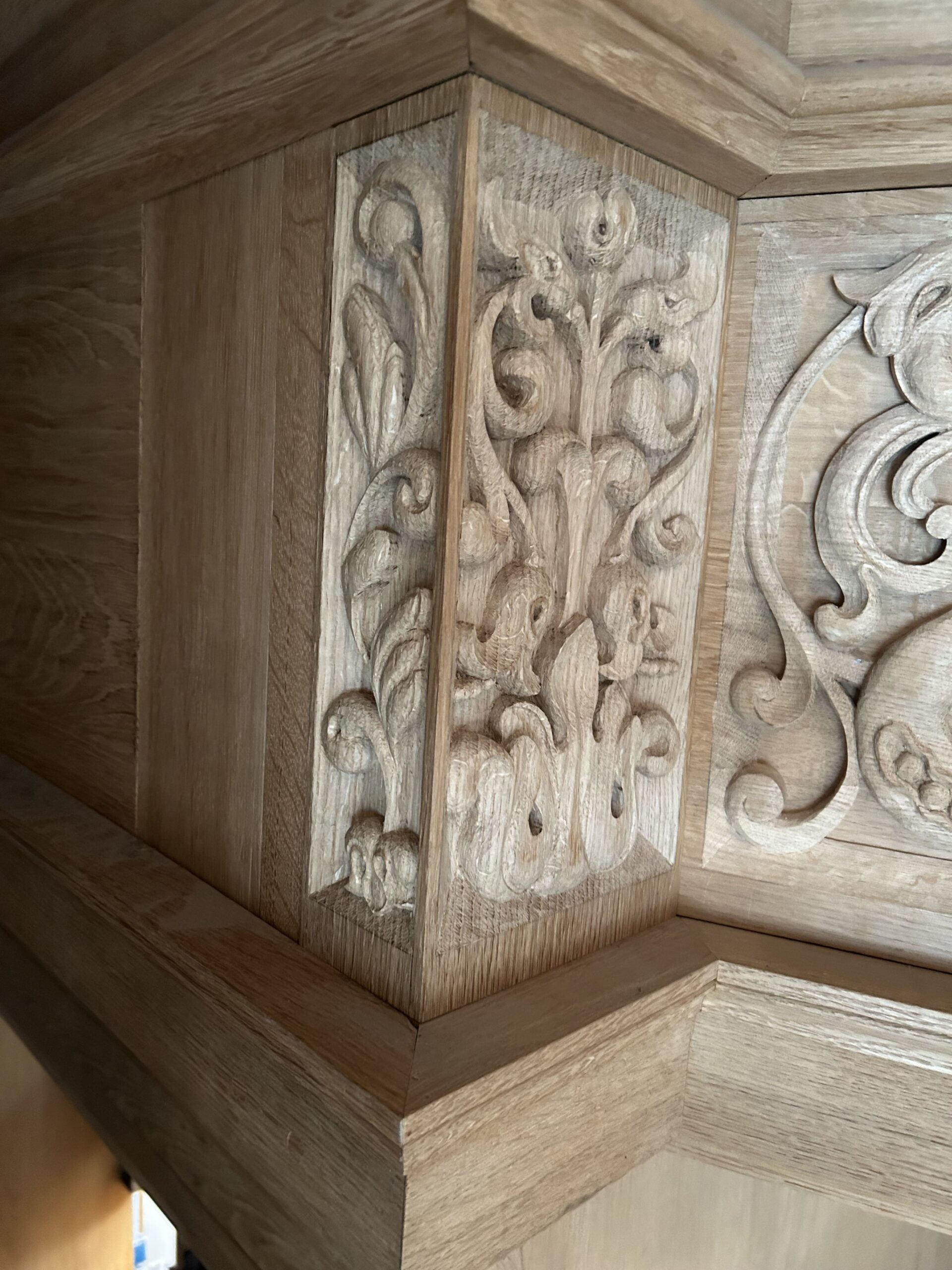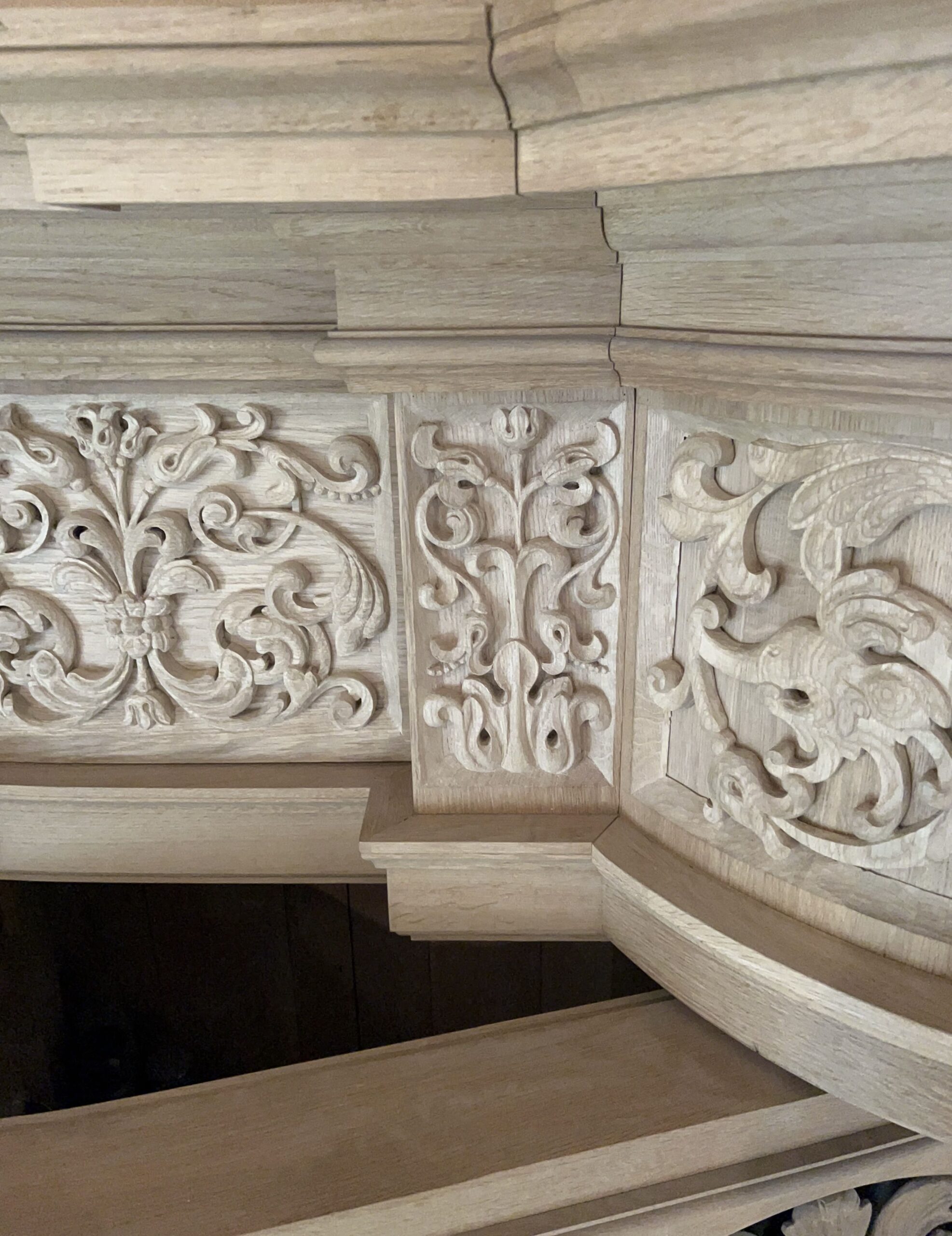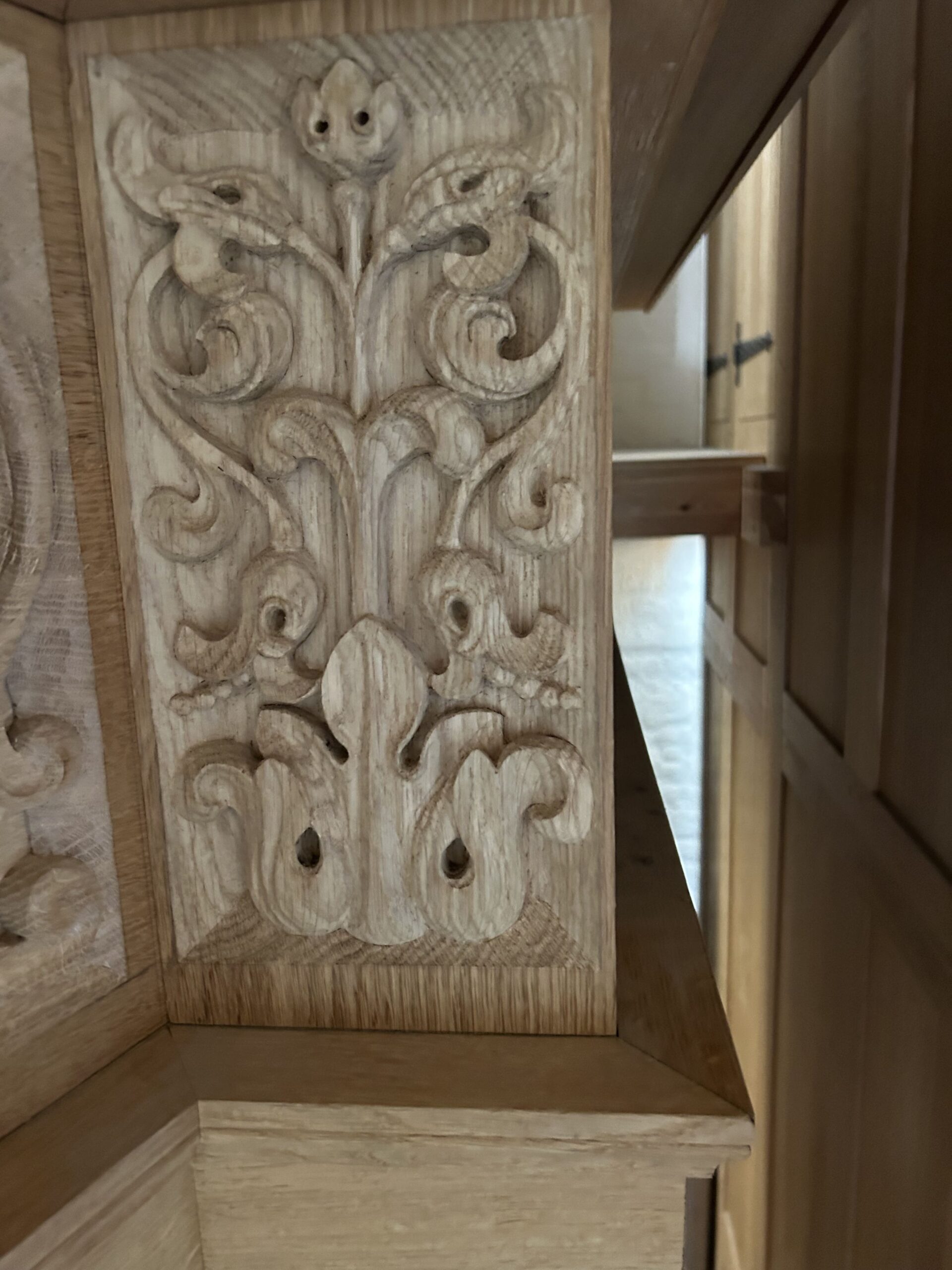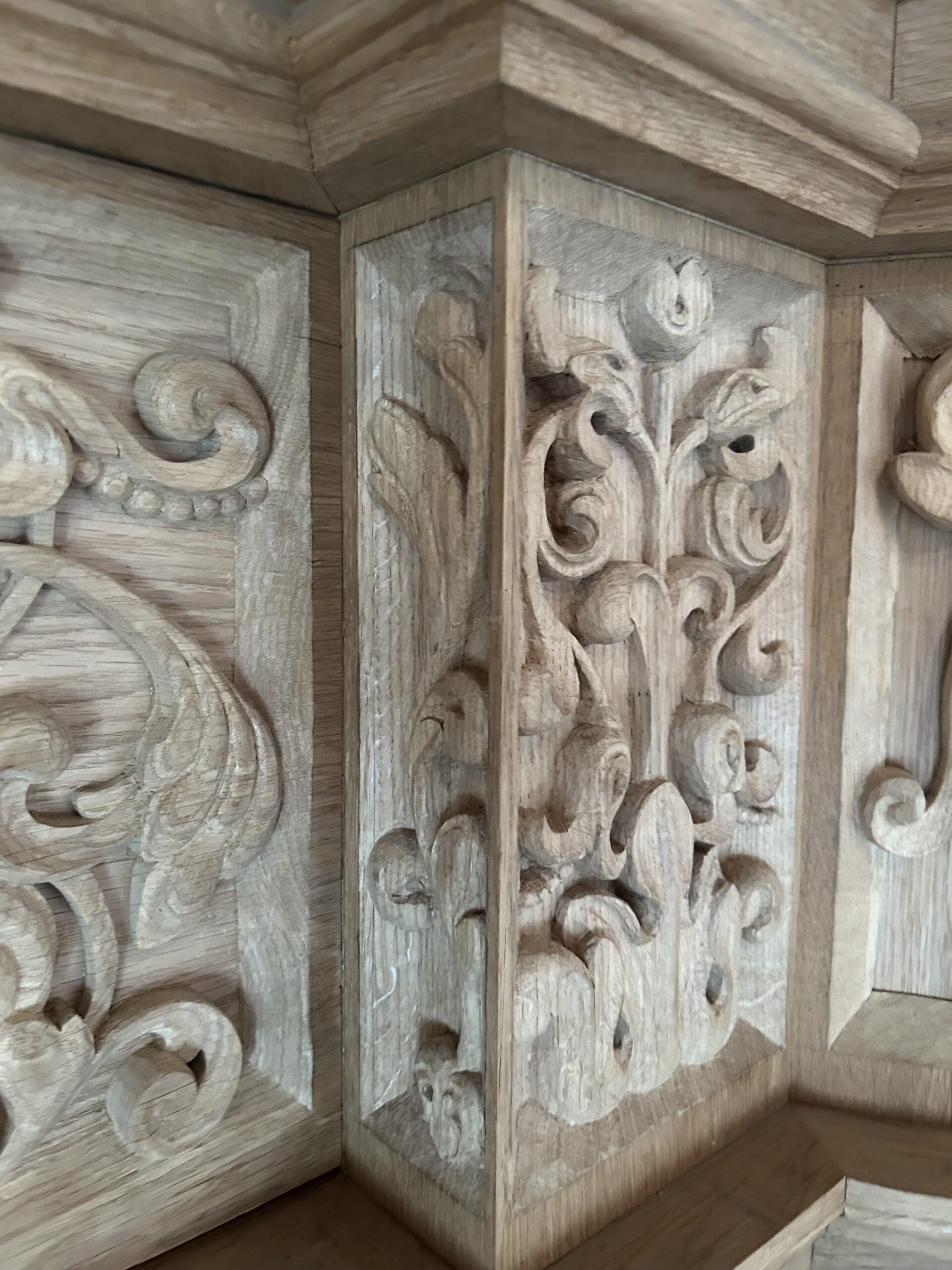 Oktober 2024 maakte Christiane Sandler het nog ontbrekende snijwerk in de Fries onder het Hoofdwerk af (zie foto’s). Flentrop monteerde het. Op een aantal plaatsen ontbreekt nog snijwerk dat de kas in 1605/1631/1674 wel had.