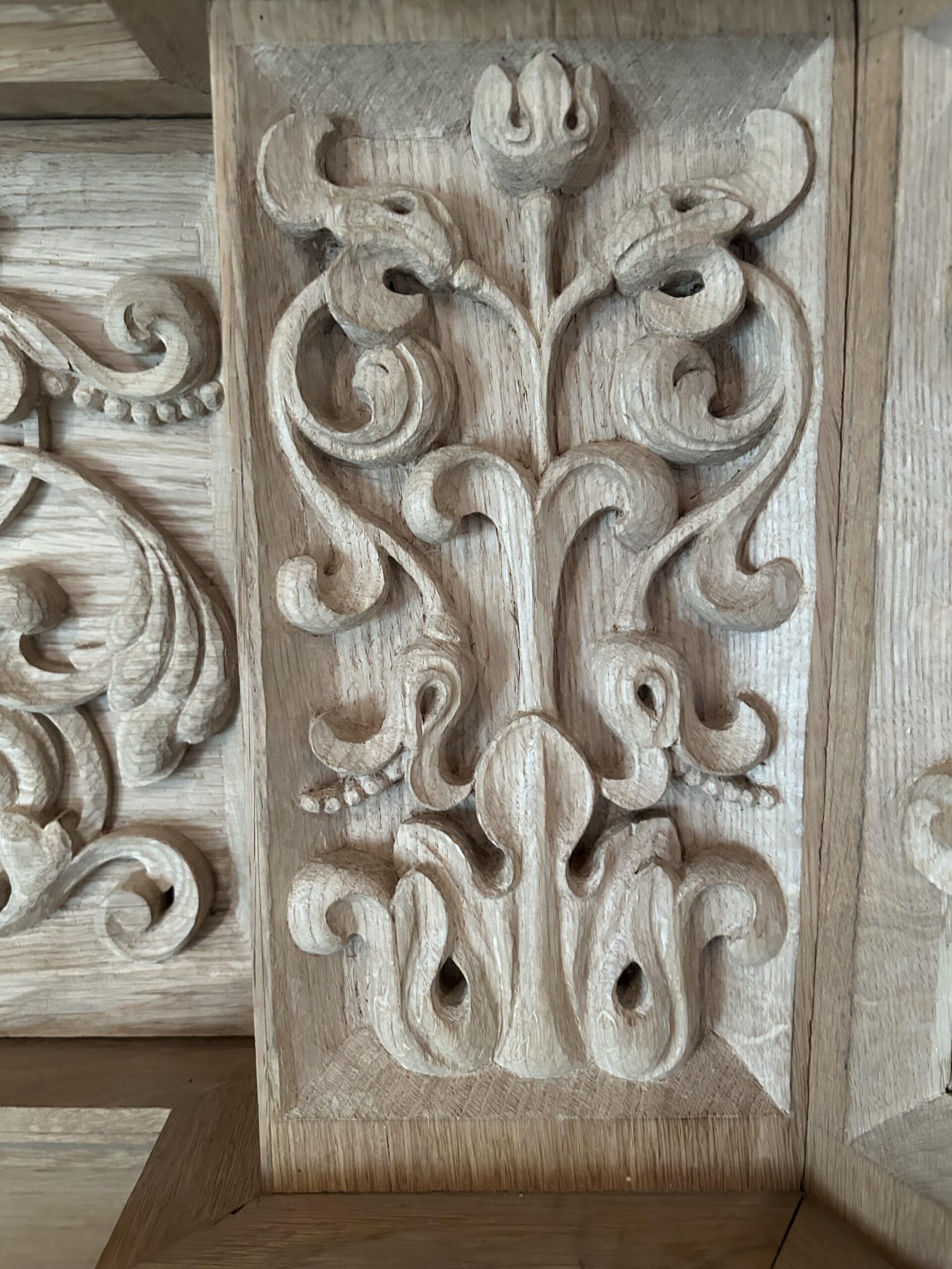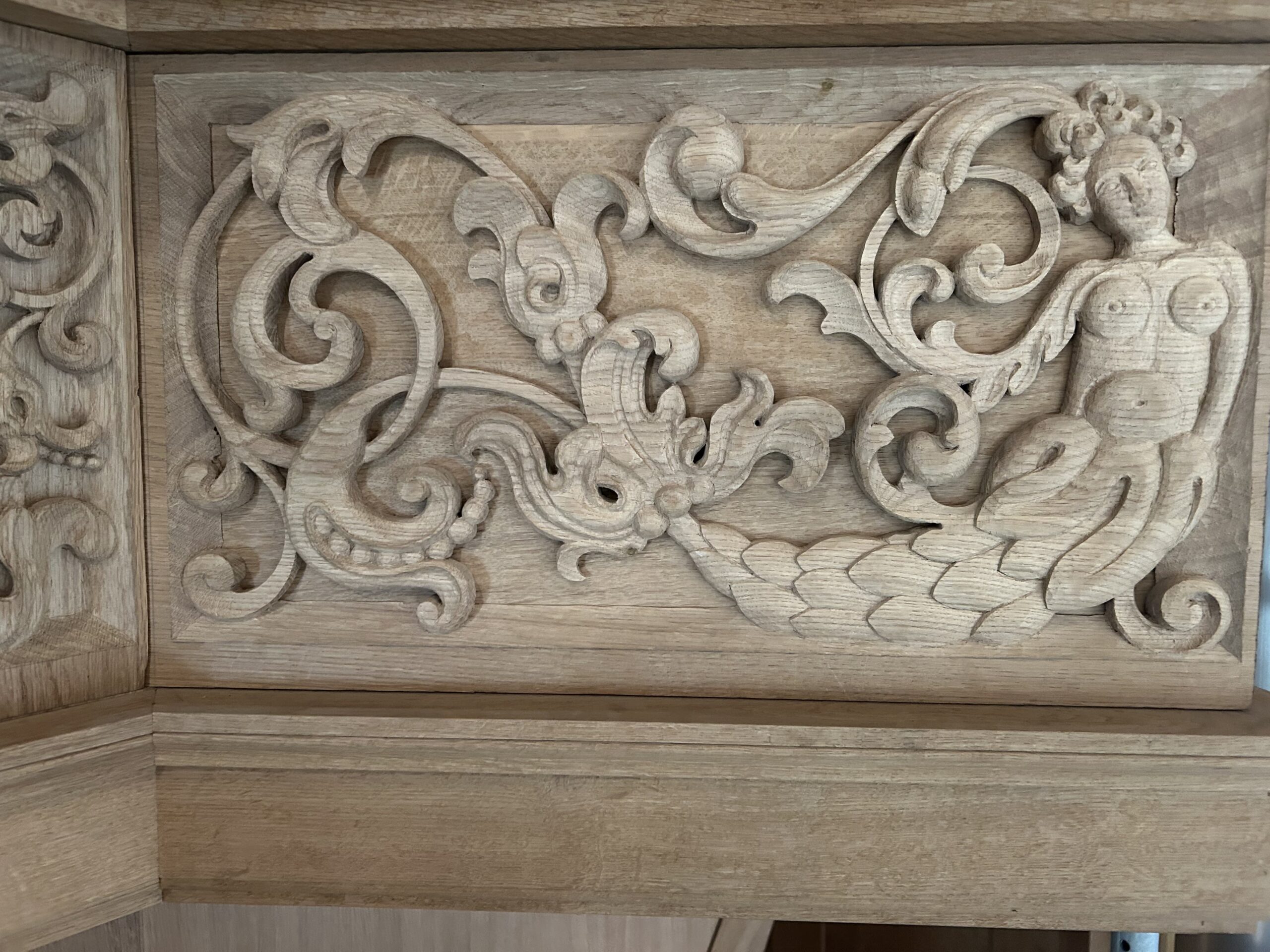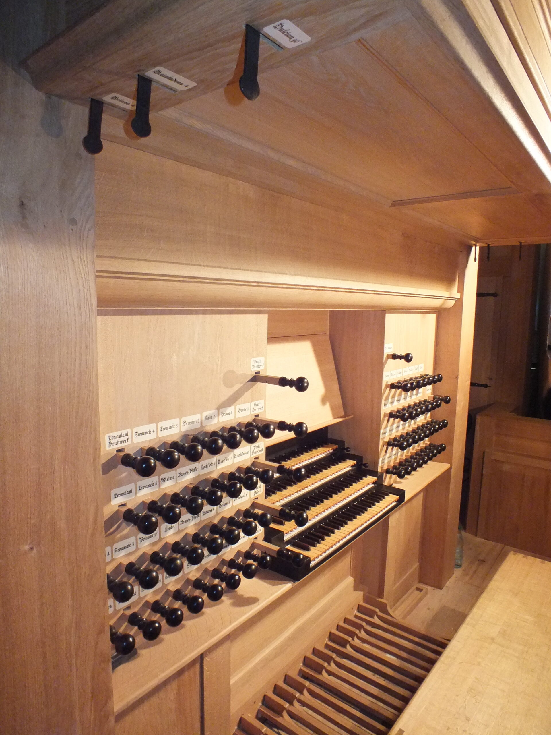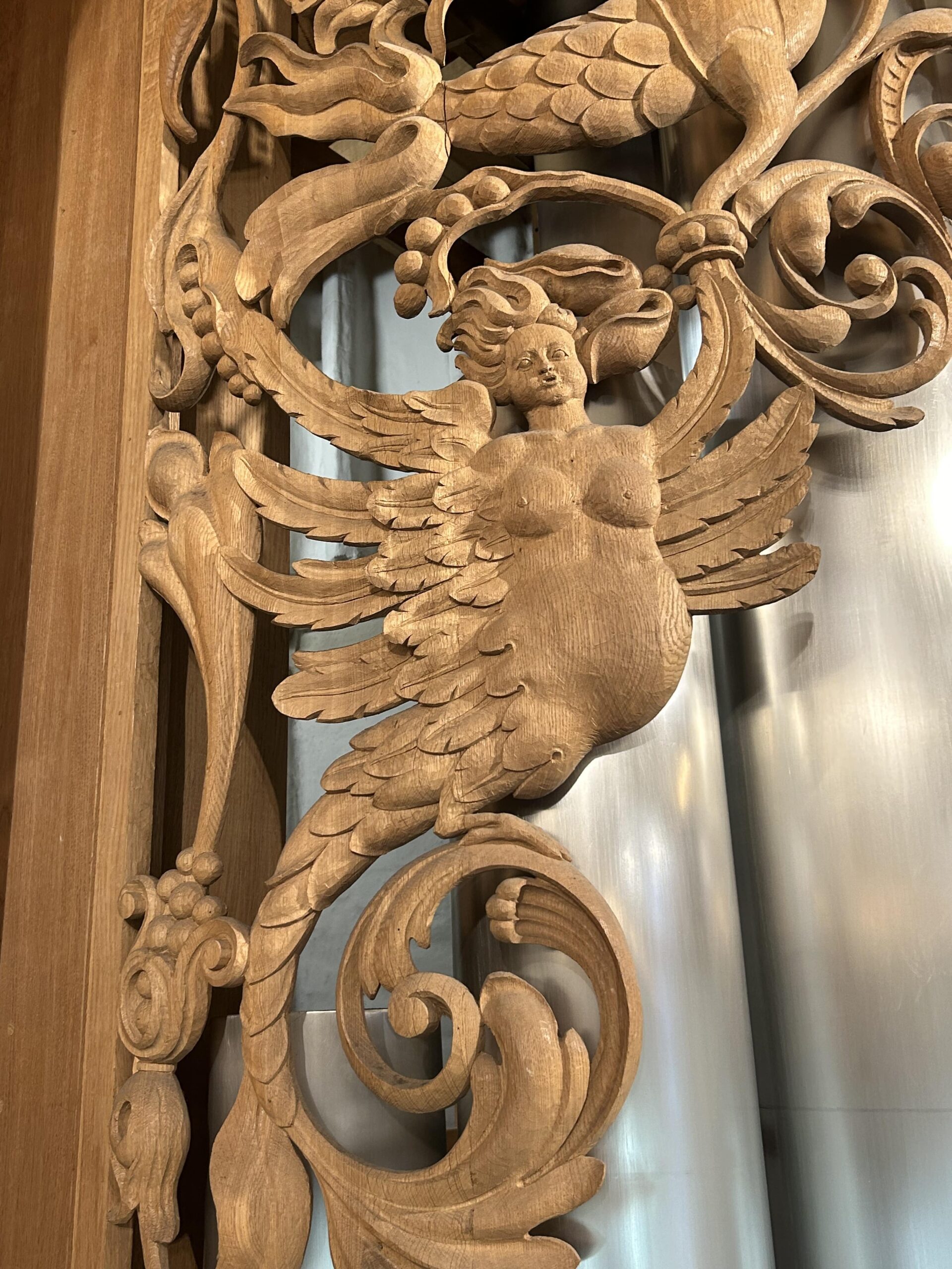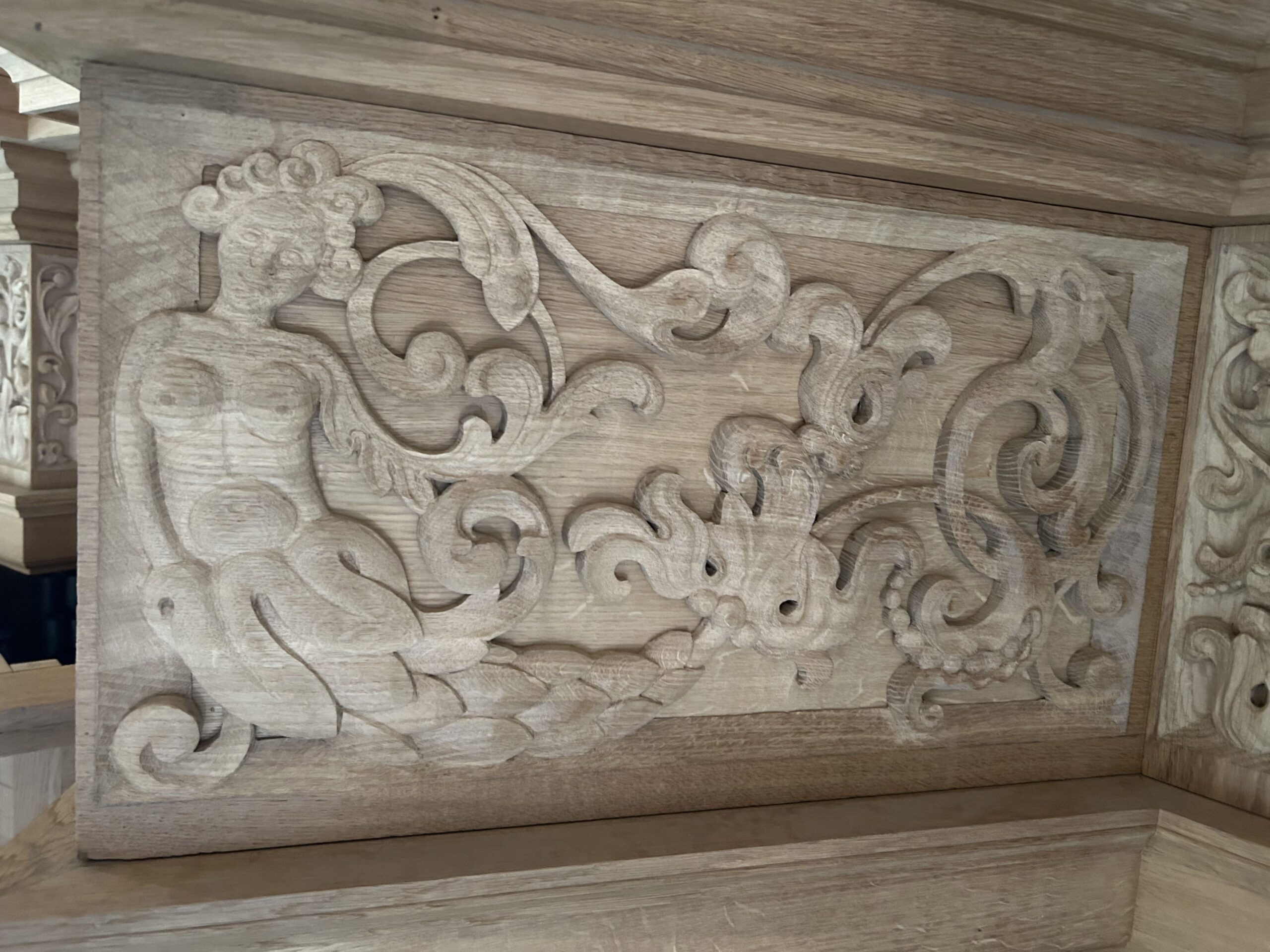 Oktober 2024 maakte Christiane Sandler het nog ontbrekende snijwerk in de Fries onder het Hoofdwerk af (zie foto’s). Flentrop monteerde het. Op een aantal plaatsen ontbreekt nog snijwerk dat de kas in 1605/1631/1674 wel had.