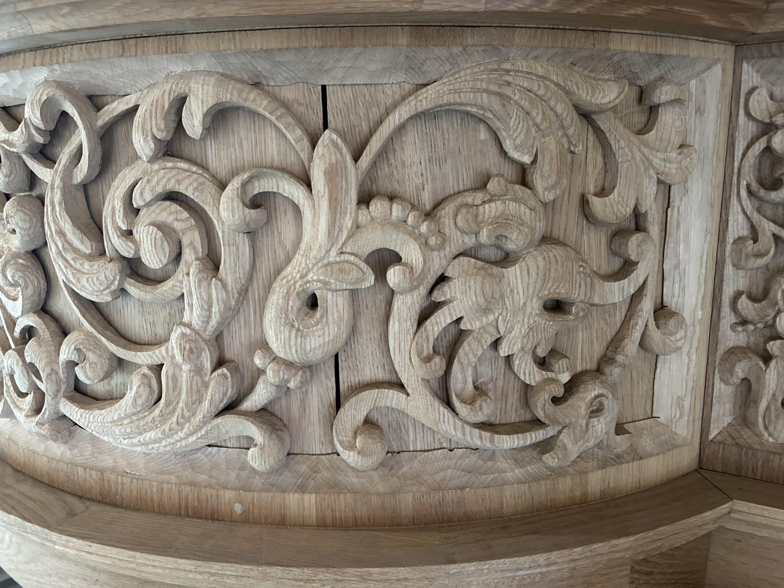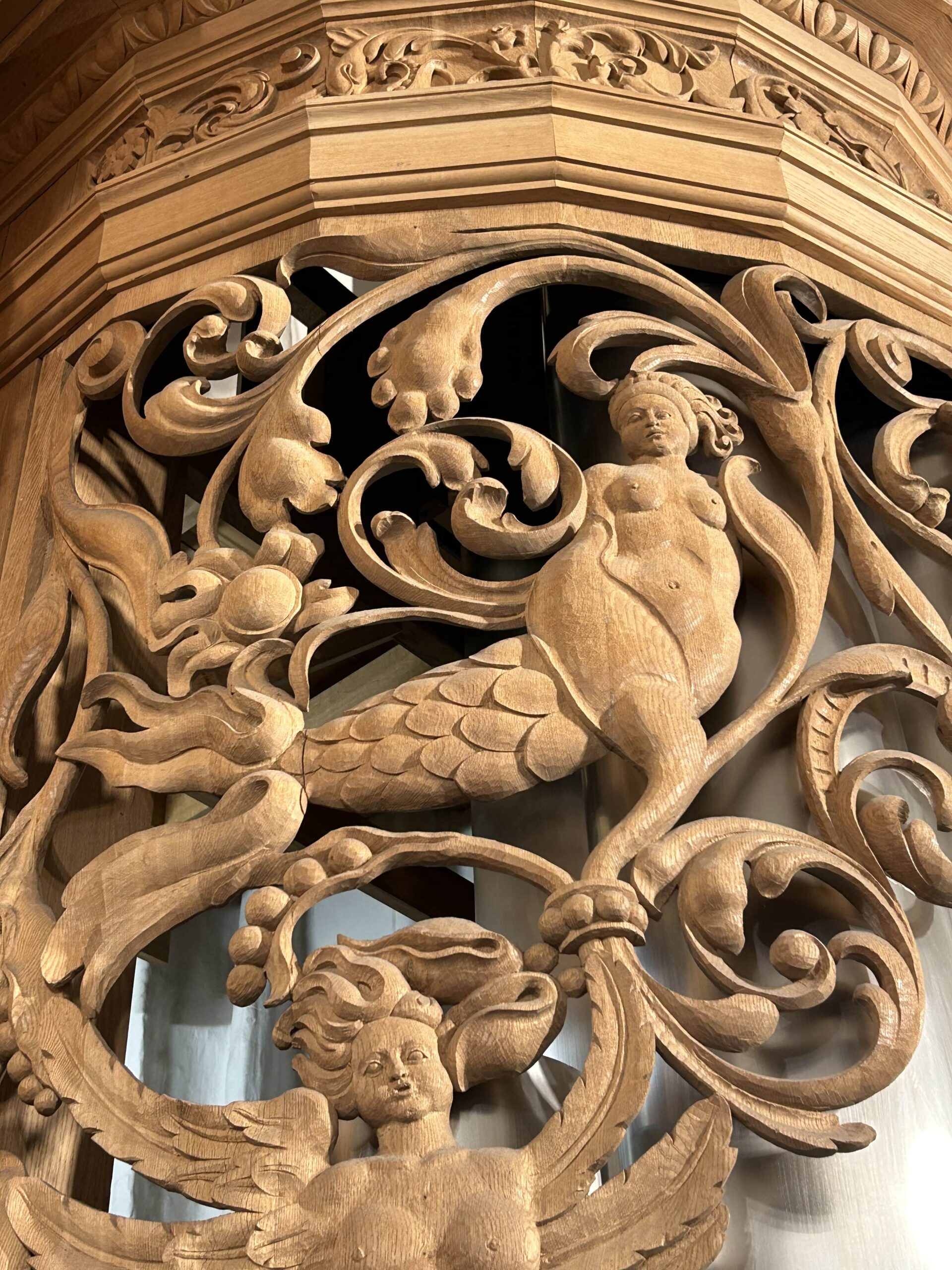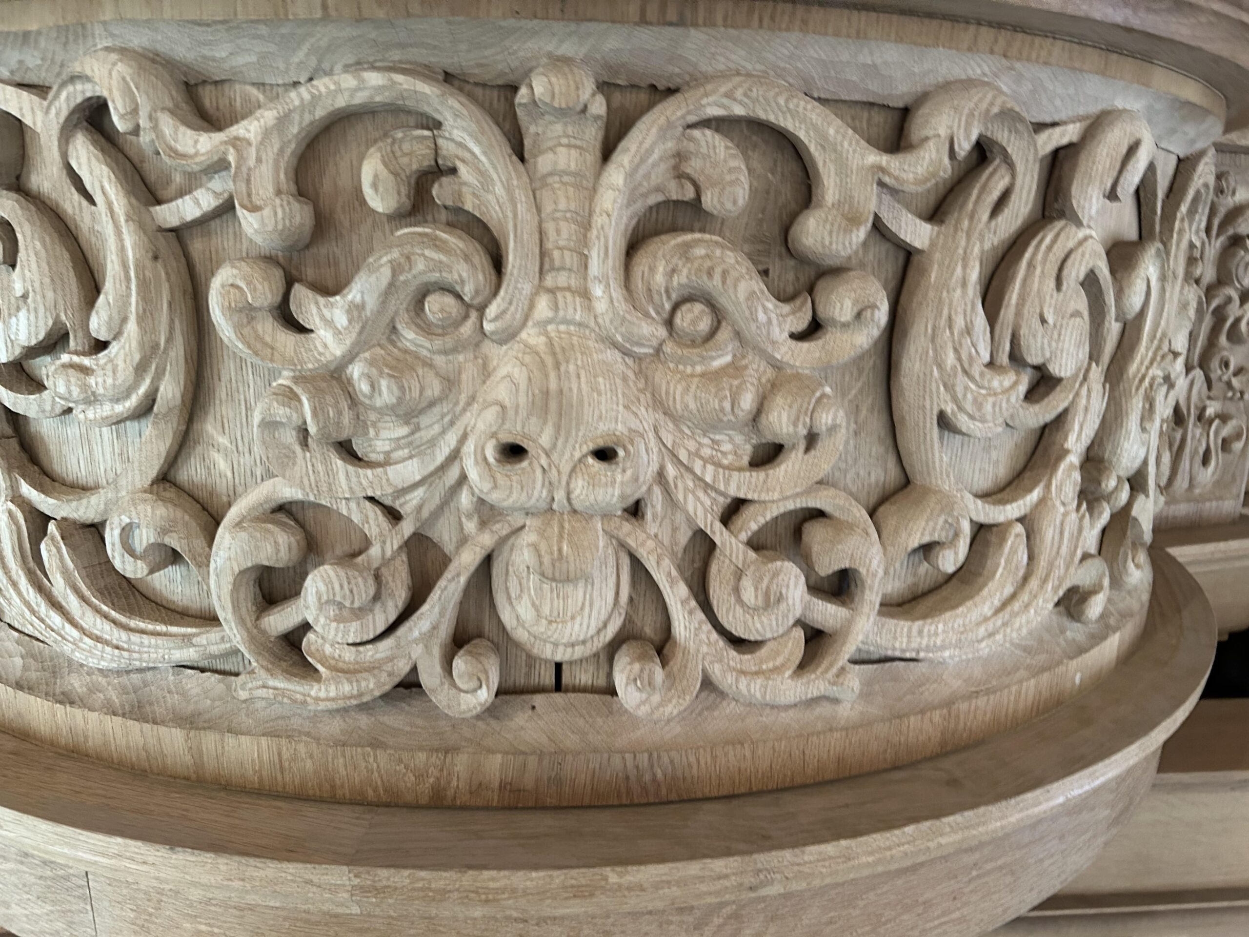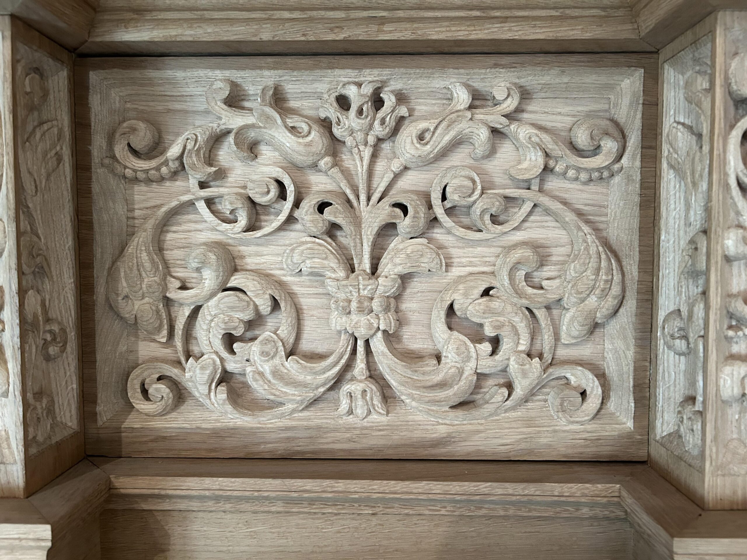 Oktober 2024 maakte Christiane Sandler het nog ontbrekende snijwerk in de Fries onder het Hoofdwerk af (zie foto’s). Flentrop monteerde het. Op een aantal plaatsen ontbreekt nog snijwerk dat de kas in 1605/1631/1674 wel had.